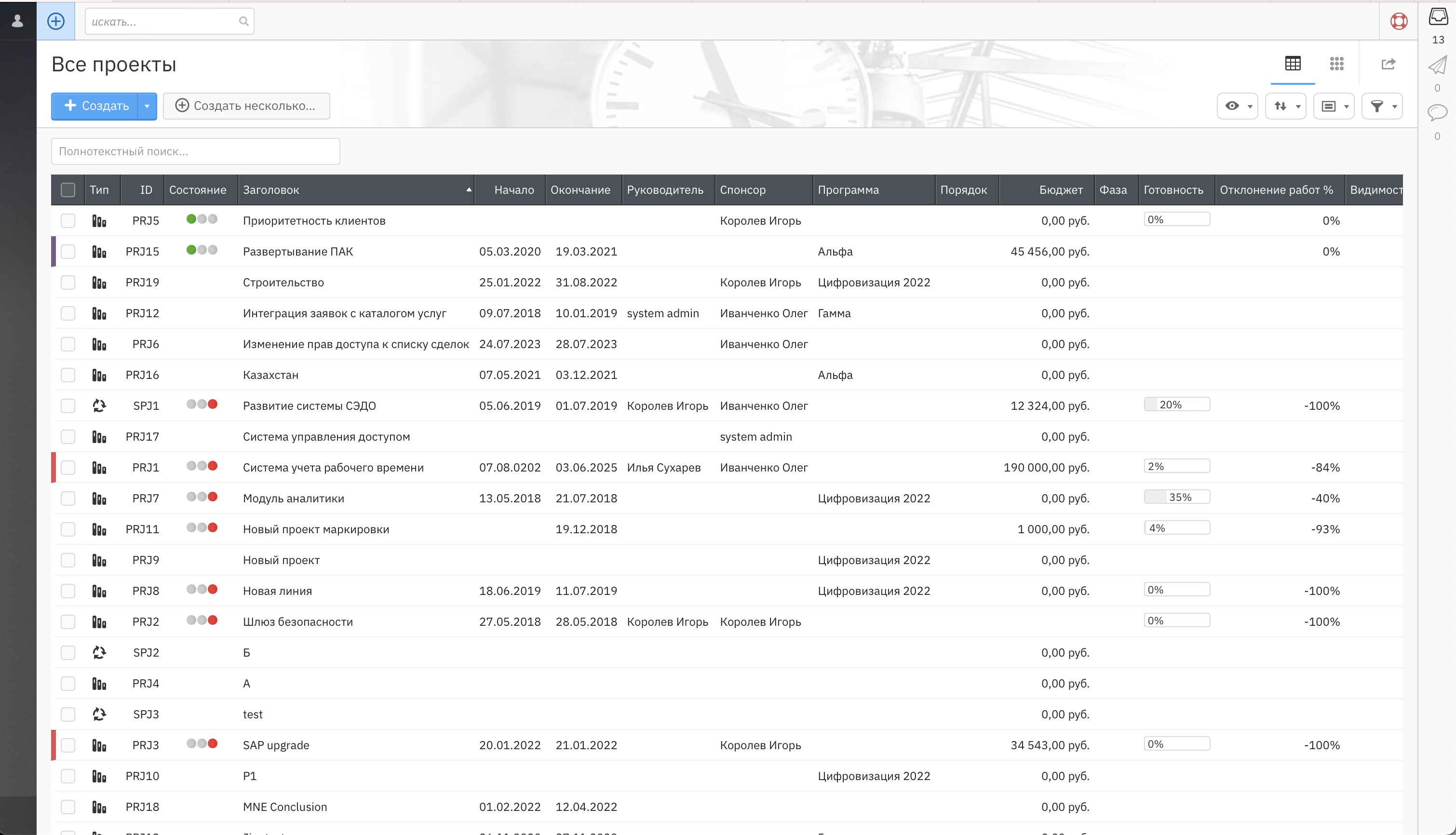 Полный цикл управления: планирование, ресурсы, бюджеты, требования. Поддержка Waterfall и Agile. Портфели и программы для стратегического управления.